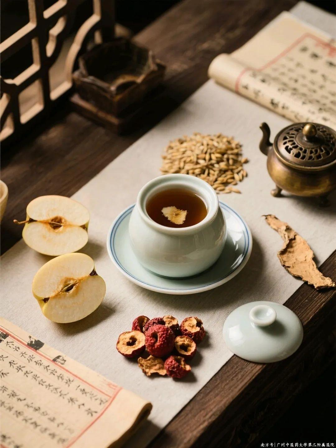 【做法】苹果去核切片,将所有材料加适量清水煮沸,转小火煮20分钟。过滤渣滓,饮汤代茶,可加少量蜂蜜调味。